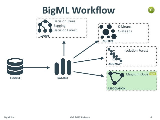 這些過程顯然會以不同的順序迭代。BigML平臺提供了很好的結果可視化,並具有求解分類、回歸、聚類、異常檢測和關聯發現問題的演算法。他們提供按月、季度和年度訂閱捆綁在一起的幾個軟體包。他們甚至提供免費套餐,但上傳數據集的大小限制為16MB。